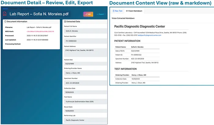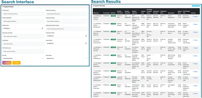 我们最近一直在研究一个自动化工作流管道的概念验证,用于处理这些传真并将数据提取为结构化格式。输出可以存储在数据库中,并与一个用户界面应用程序配对,让诊所工作人员可以监控和查看传入的结果。