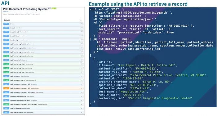 带有示例的医疗结果文档处理系统 API(点击图像放大)