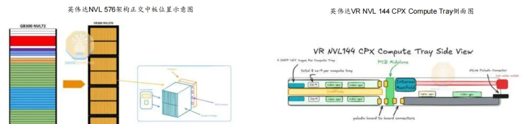 Rubin系列核心突破在于采用无缆化互连设计,将GPU与Switch间的高速传输由传统线缆转向Switch tray、Midplane及CX9/CPX等多层PCB板直接承载。这一转变对信号完整性与传输稳定性提出更高要求,进而推动PCB设计与材料体系向高端化演进。