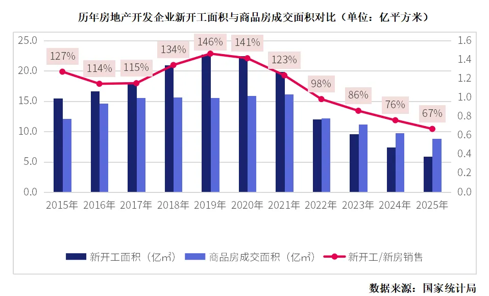 三者的协同调整还带动竣工端保障升级。2025年全国房屋竣工面积累计达6亿平方米,12月竣工面积同比降幅较11月收窄7.0个百分点,各地保交房工作持续提速,396万套保交房任务全面完成。投资、新开工与新房交易的三角适配,形成了“稳现金流、去库存、保交付”的闭环支撑,成为行业稳定的核心驱动力。