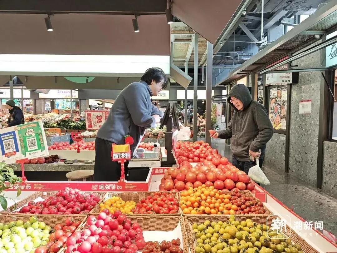 相比之下,专卖番茄的“远强番茄”摊主对价格变化的感受就更直观。摊主是一位来自甘肃的年轻人,来文二菜场还不到一年。她坦言这段时间生意难做:“一方面是价格涨了,一方面是天气冷,大家都不愿意出来买菜了。”