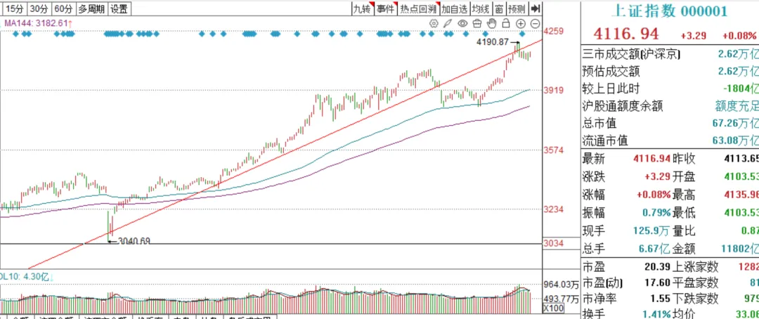 这个位置指数会有分歧,但是分歧之后大概率继续上行,逻辑很简单:只要成交量可以维持,行情就不会结束!所以有些调整的板块反而是我们上车的机会。