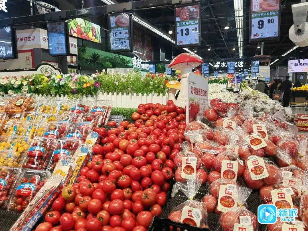 1月19日,在佳乐家超市谷德店,各种蔬菜琳琅满目,格外新鲜,吸引了不少市民前来选购。香菜16.9元/斤、蒜薹10.9元/斤、马家沟芹菜9.9元/斤、奶白菜5.28元/斤、菠菜4.99元/斤、白芸豆6.58元/斤,尖椒、茼蒿、黄瓜、长茄、圆茄均为6.99元/斤,西红柿不同品种价格差异较大,普通西红柿9.9元/斤,逄王草莓西红柿13.9元/斤、8个装的逄王粉西红柿29.9元/盒,9个装的拉克多口感番茄39.9元/盒……
