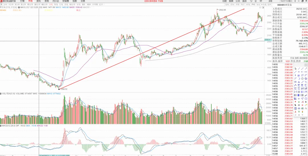 我要说的是,今天涨幅第二的是IT设备。有些同志元旦前没有去低吸我提示的名单,元旦一回来发现某些板块已经拉的太猛了,又着急了,难道没有发现那一串名单中有些板块在元旦第一周还没有大幅表现么?比如IT设备,1月5号的时候还在相对低位,比如医药,现在依旧还在相对低位。