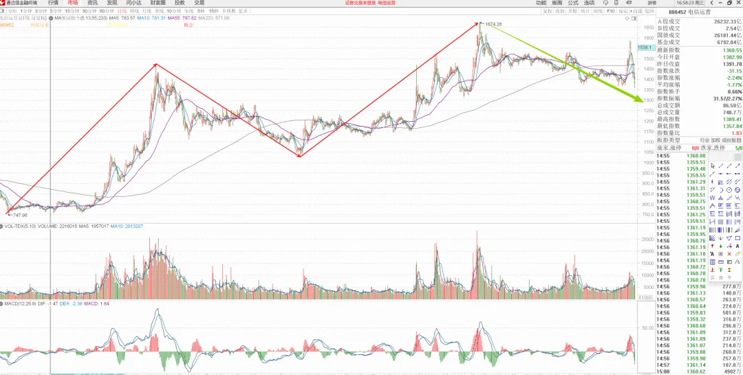今天跌幅第一的板块是电信运营,日线向下段未结束,元旦后第一周的表现就是虚晃一枪。