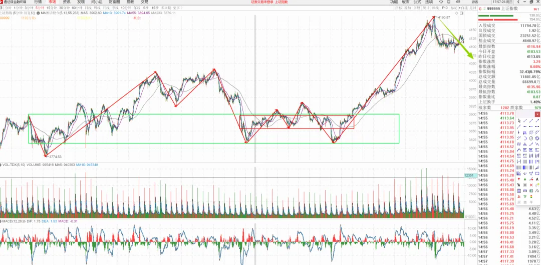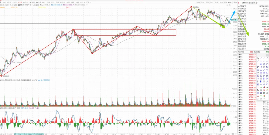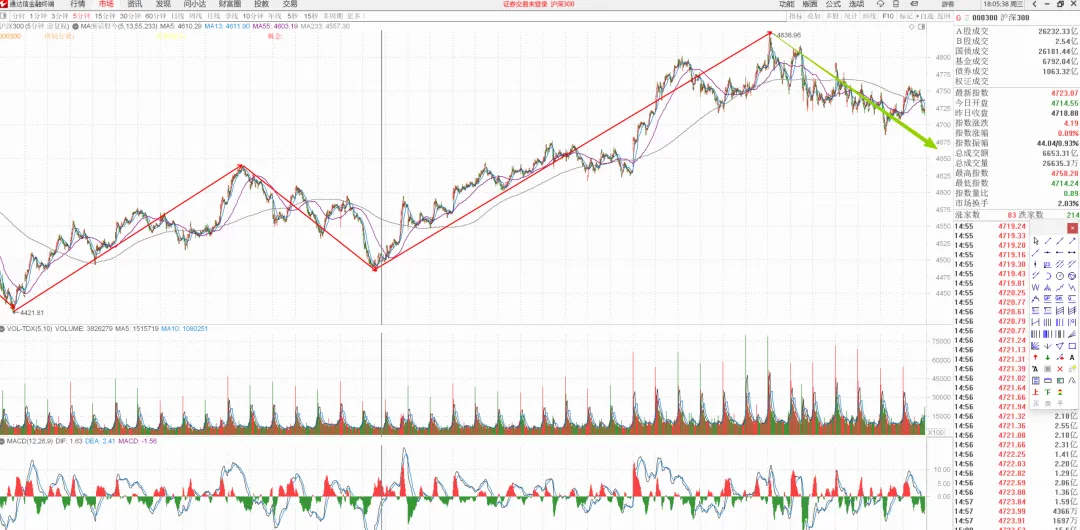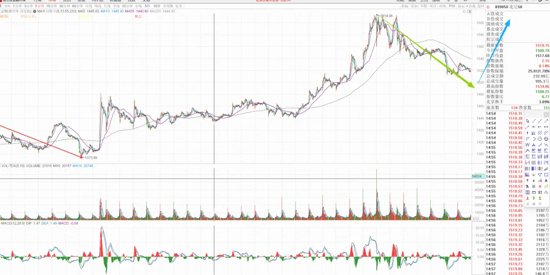 5min向下段未结束,可以开始留意个股低吸回补机会了,右侧向上段如果不能新高就要多减仓位。