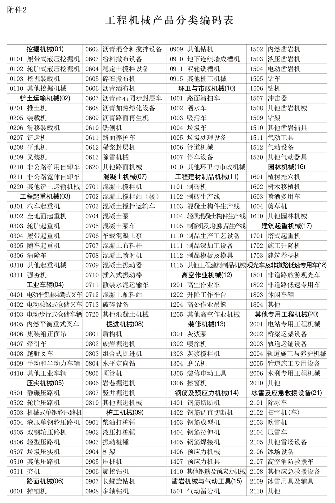 1. 机械工业综合统计年报(表1-表3)2. 工程机械产品分类编码表