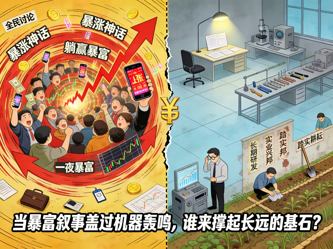 在外部经济环境并不算宽松的背景下,如果股市:天天暴涨,全民讨论,一夜暴富叙事泛滥,那会带来什么后果?谁还老老实实上班?谁还安心做研发?谁还愿意干长期、慢回报的事情?这不是阴谋论,这是社会运行的基本逻辑。