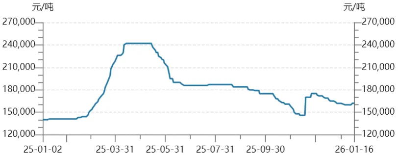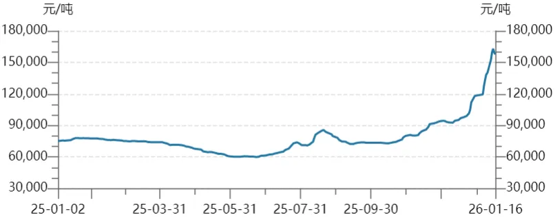 碳酸锂99.5%电(国产)现货价(元/吨)