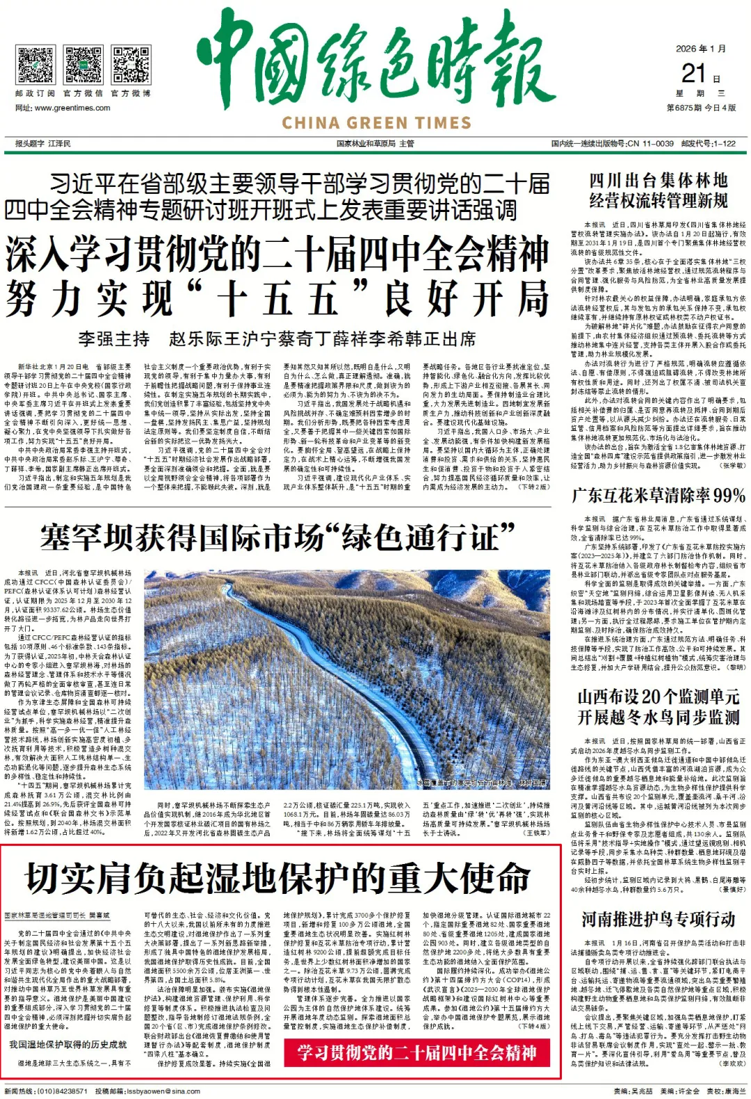 【行业资讯】切实肩负起湿地保护的重大使命(学习贯彻党的二十届四中全会精神)