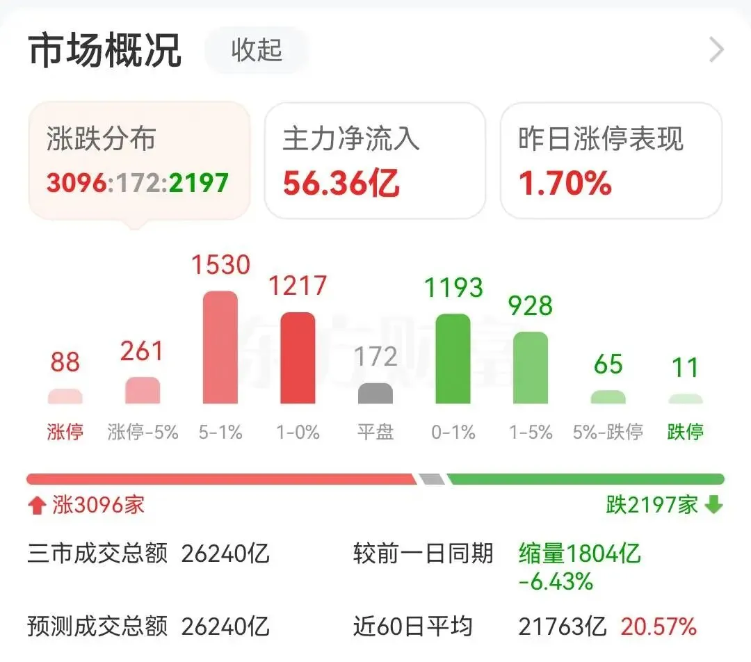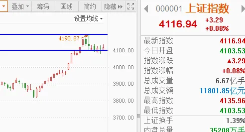 依然是老观点4100-4200之间震荡为主,两市成交约2.6万亿元、较昨日缩量1771亿,超3000只个股上涨。