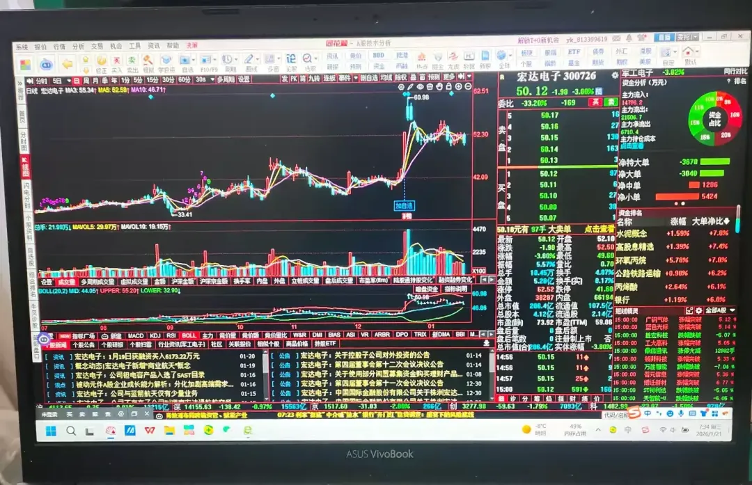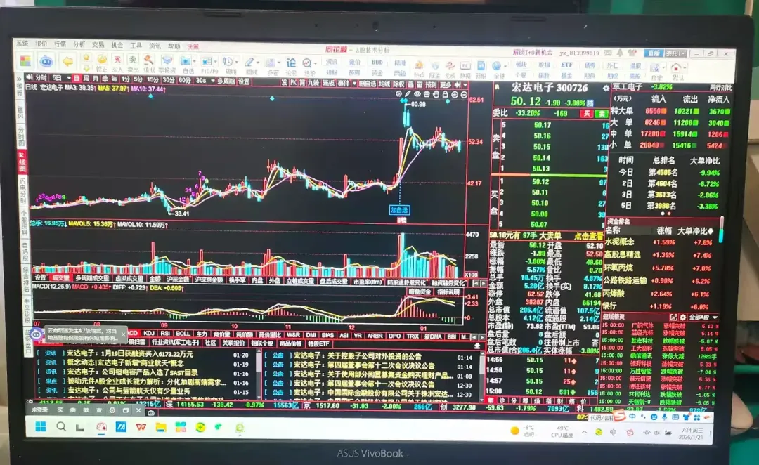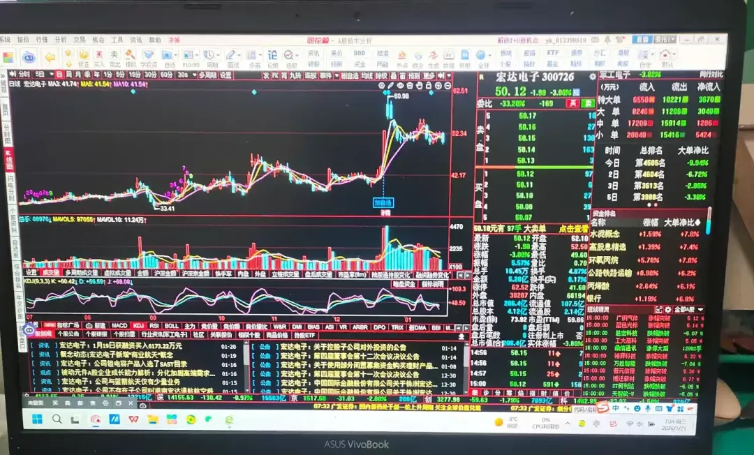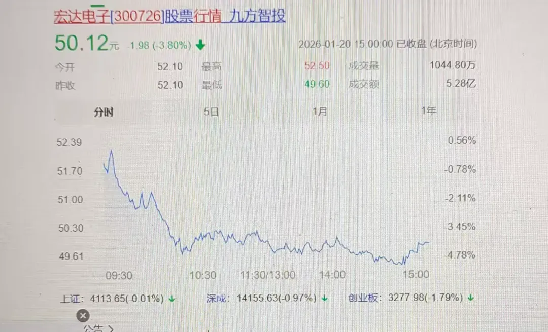 下面图文是《宏达电子(300726)》股票2026年1月20日行情走势!