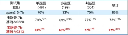 1、在语言模型方面,构建“通用基座-行业专属-推理优化”分层架构,确保大模型通识能力的基础上,强化领域特征,并优化推理效率与适配性,实现多阶段模型提升架构创新。采用“继续预训练+SFT调优+蒸馏压缩”联合优化策略,通过行业特征增强、监督精调与高效蒸馏,实现模型性能与推理能力的双提升,成功训练垂类语言模型“宝联登-7b”,领域能力测评提升10%。