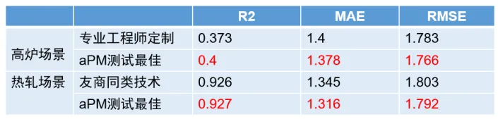 4、在预测模型方面,基于预测模型框架体系,进行案例测试,包括热轧宽展预测数据、高炉压差预测数据等数据集,最优算法效果与专业算法工程师定制化模型效果相当,整体能力不低于国内先进友商水平。