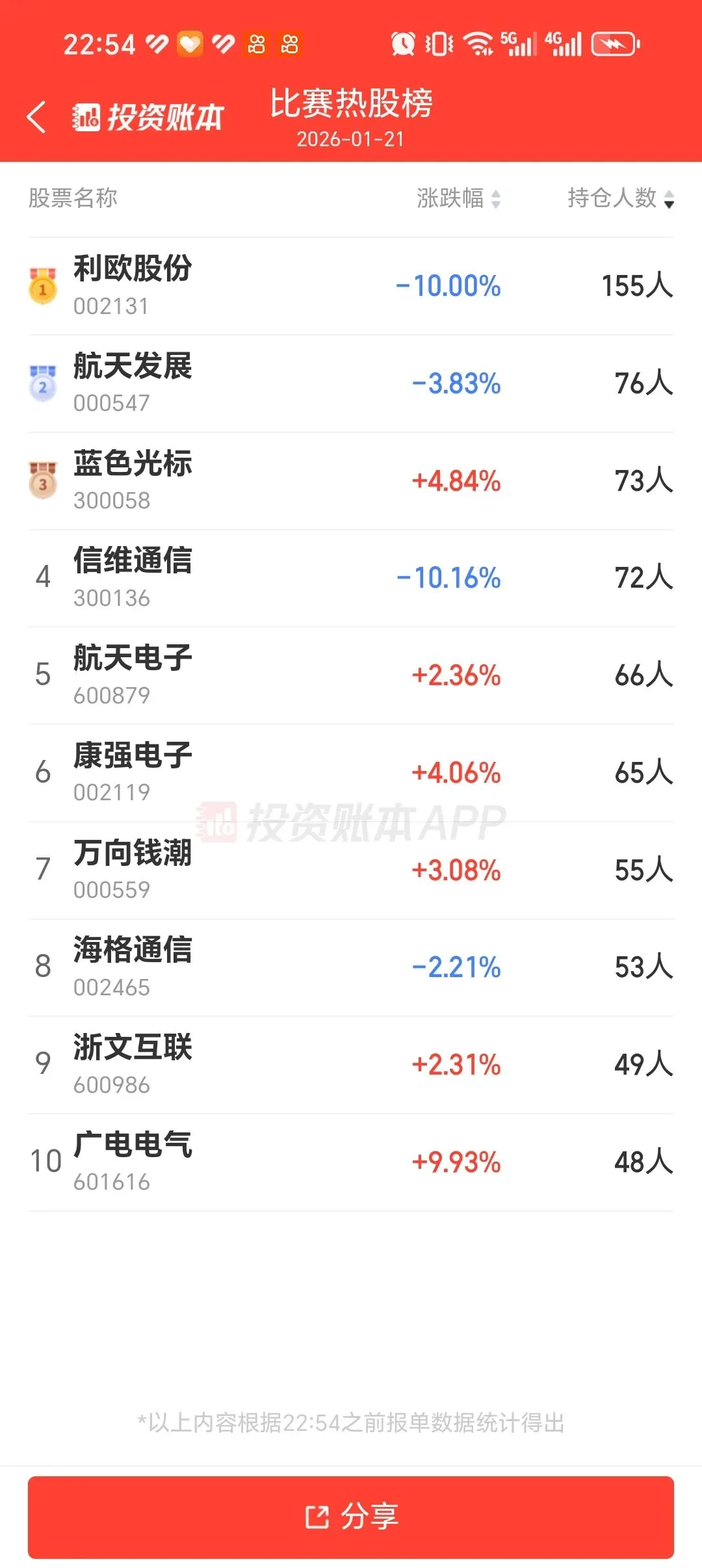 利欧今天一字跌停,封单110亿,成交了3亿多。停牌前一个交易日,成交220多亿。这部分资金出来的时候,估计最至少回撤三个板啊!你看参加比赛的有100多人在里面了!