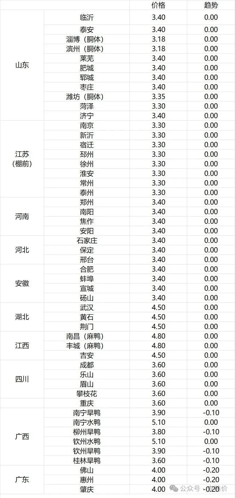 微评:鸭苗报价上涨。(注:南方只报当天价格)合同停放进入尾声,跨年合同补栏情绪向好。根据产品、养殖成本及鸭苗现状分析,预计近期鸭苗价格呈逐步上行趋势。种蛋报价涨1毛。温馨提示:该价格为主流厂家报价,实际销售价格以成交价格为准,价格仅供参考。