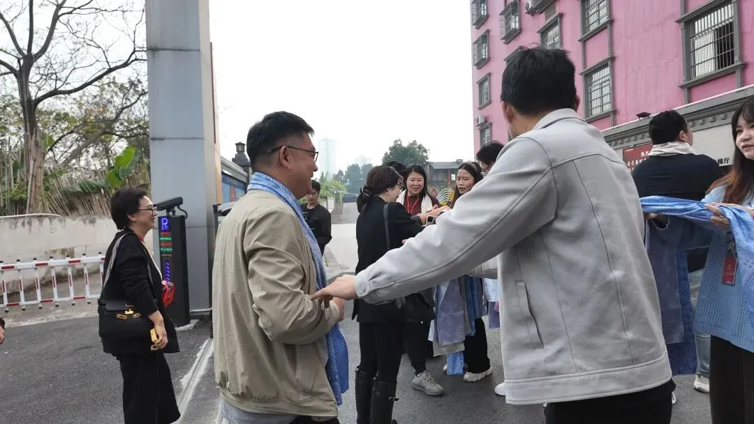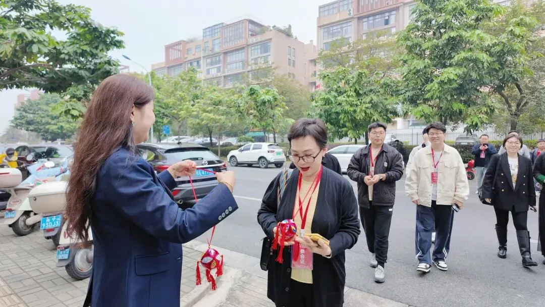 作为本次会议承办单位之一,南宁市诚远艺术培训学校成为考察行程的重要一站。我校老师们为每位嘉宾送上精心准备的绣球挂件,承载着广西本土文化的心意让现场充满暖意,也展现了机构深厚的人文底蕴。