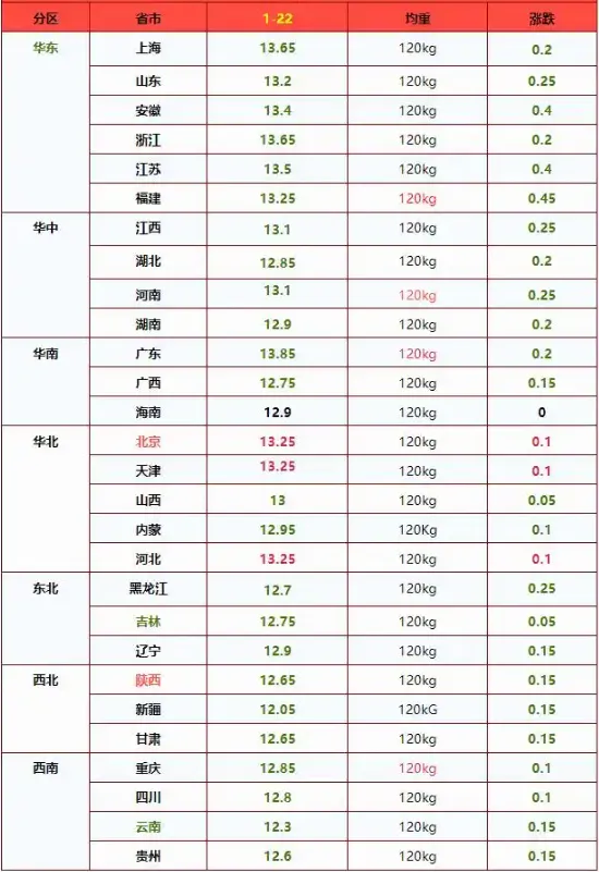 1月22日生猪价格,