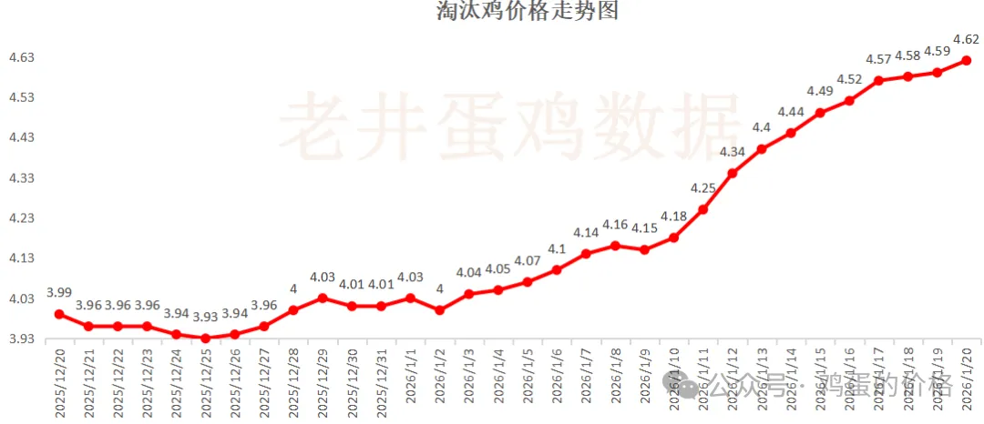 昨日,淘汰鸡均价4.62元/斤,较前日增0.03元/斤,增幅0.65%!