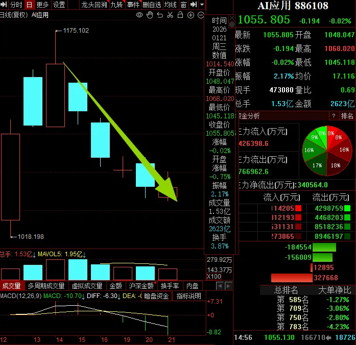 消息一出,AI应用应声回调。本以为,AI应用会像商业航天那样,回调个一两天就重回上升趋势,结果AI应用一蹶不振,愣是回调了一周。
