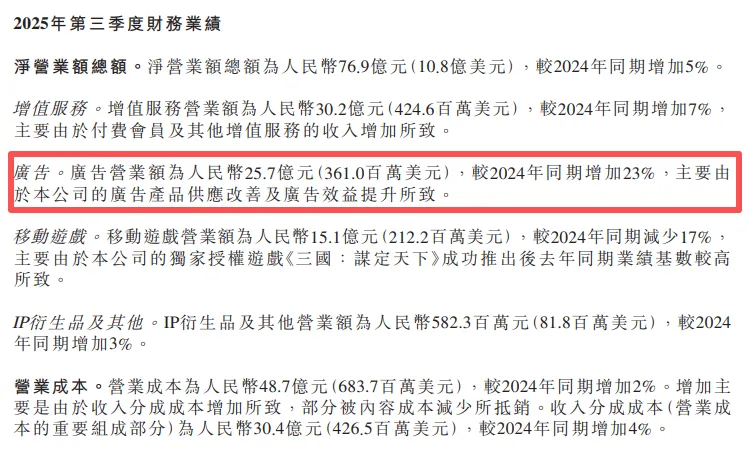 再比如哔哩哔哩,25年Q3,AI行业广告收入同比增长23%。