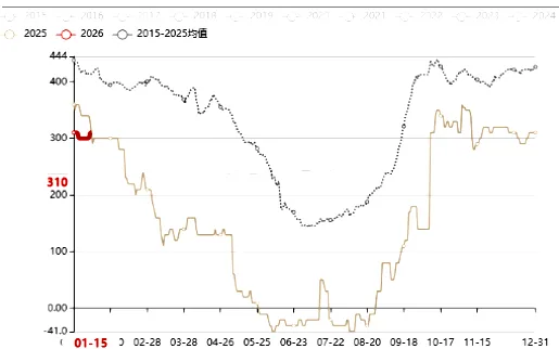 截至1月16日,河南小麦与玉米的价差为310元/吨,与2025年同期持平,小麦饲用替代优势也较弱。但是近期北方地区雨雪天气影响道路运输,短期麦价表现偏强。
