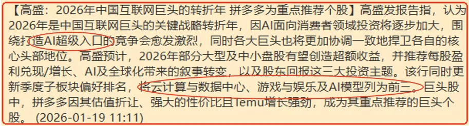 以上是我们根据高盛的行业指引做的分析,仅供参考。咱们还是要理性预期,“AI入口”之争才打响,外资为首的机构在观察效果,可能是看到一步再预期下一步,而非是炒概念那种一哄而上,对中长线定力要求更高。而A股游资散户追捧AI应用虽有抢跑嫌疑,但大趋势对路,只是期待虚火消退之后回归价值。