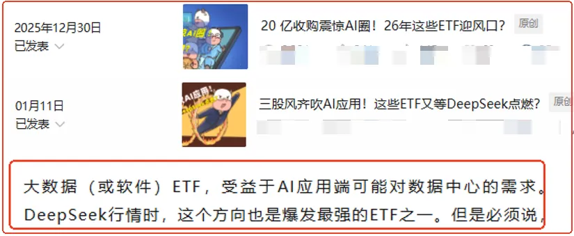 515400这个大数据ETF其实也是大家比较熟悉的主题,更是去年DeepSeek行情中爆发最凶的品种之一,我们多次点评,其与软件、云计算等兄弟品种都算关联的。但这里我们刚好解答下朋友们的问题:大数据和软件到底有什么差别?