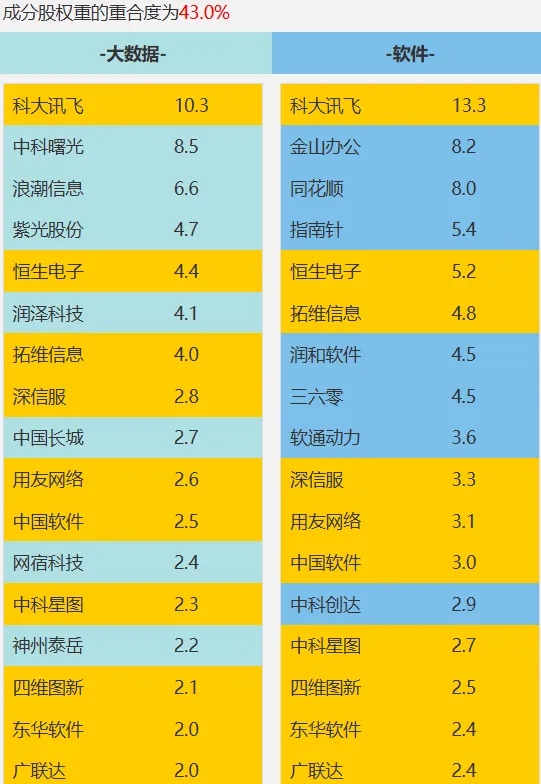 如上图,对比下成分股,大数据ETF中算力服务、数据中心成分更高,而软件ETF中软件行业特征明显。