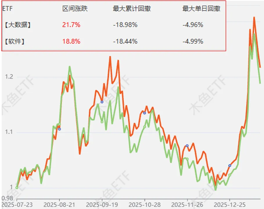 相对而言,大数据“软硬兼施”覆盖AI应用产业链更全面、长期属性更足,而软件ETF在市场人气爆炸时则获得更高弹性。