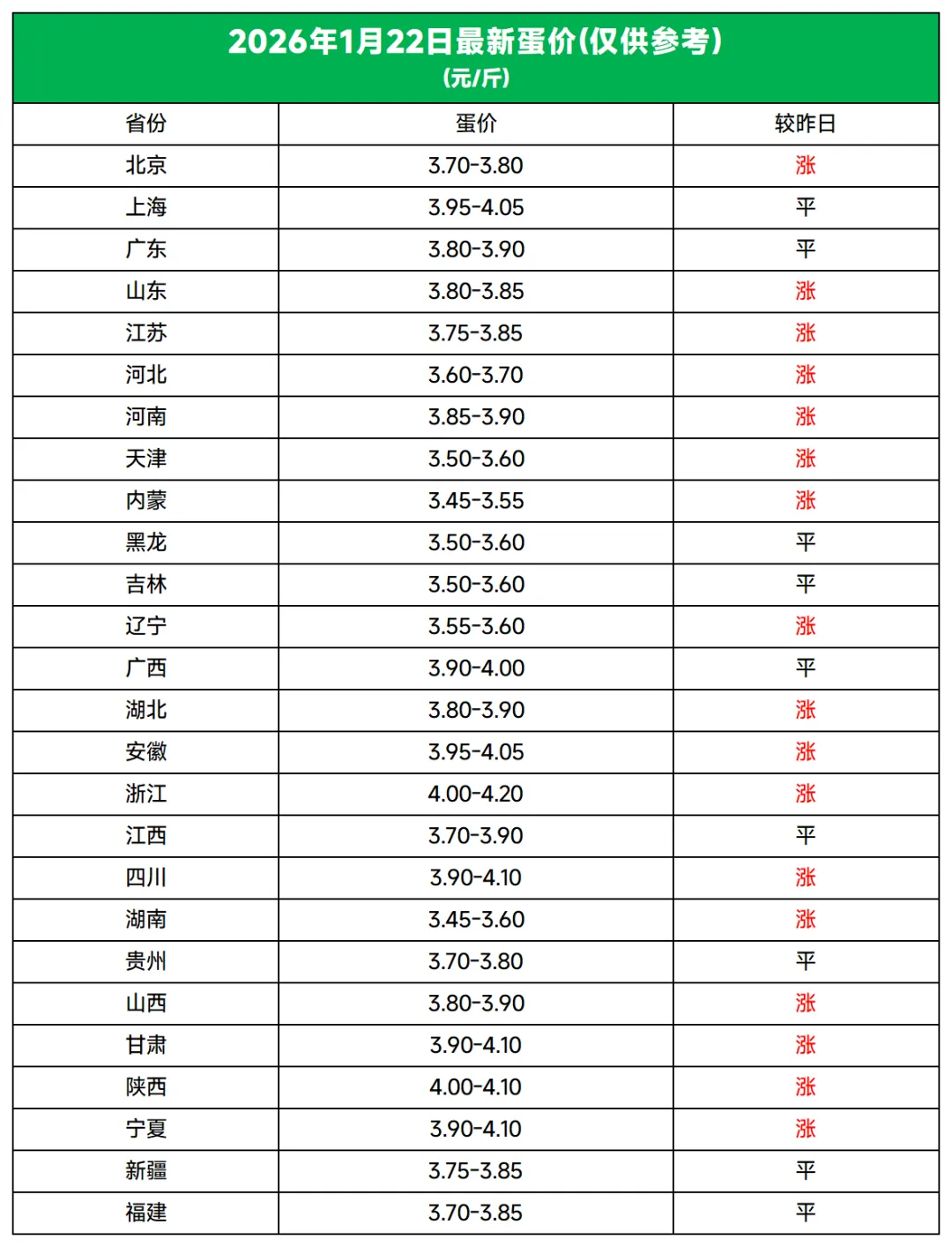 5.河南周口大蛋3.85-3.9元;驻马店大码到户3.9元涨0.1元, 走货正常市场有高有低,报价仅供参考。