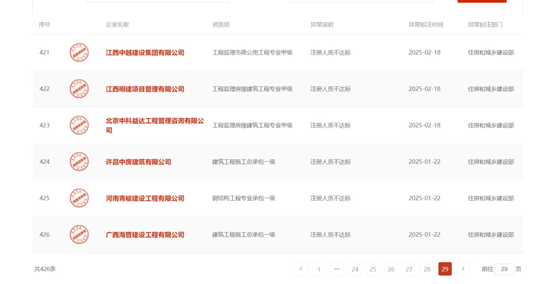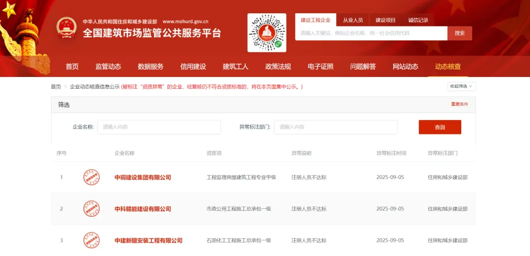 近日,全国建筑监管公共服务平台动态核查信息进行了更新,令人惊叹的是:平台显示的当前资质不合格企业数量已增至8000余家。这是由于上周(2026年1月16日左右)住建部采取了一次大规模对建筑企业资质进行动态核查的方式,并且在四库一平台对住建部审批核发的资质企业中注册人员数量不足情况进行了资质异常标注。
