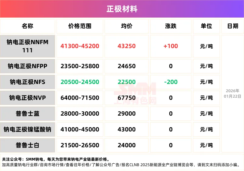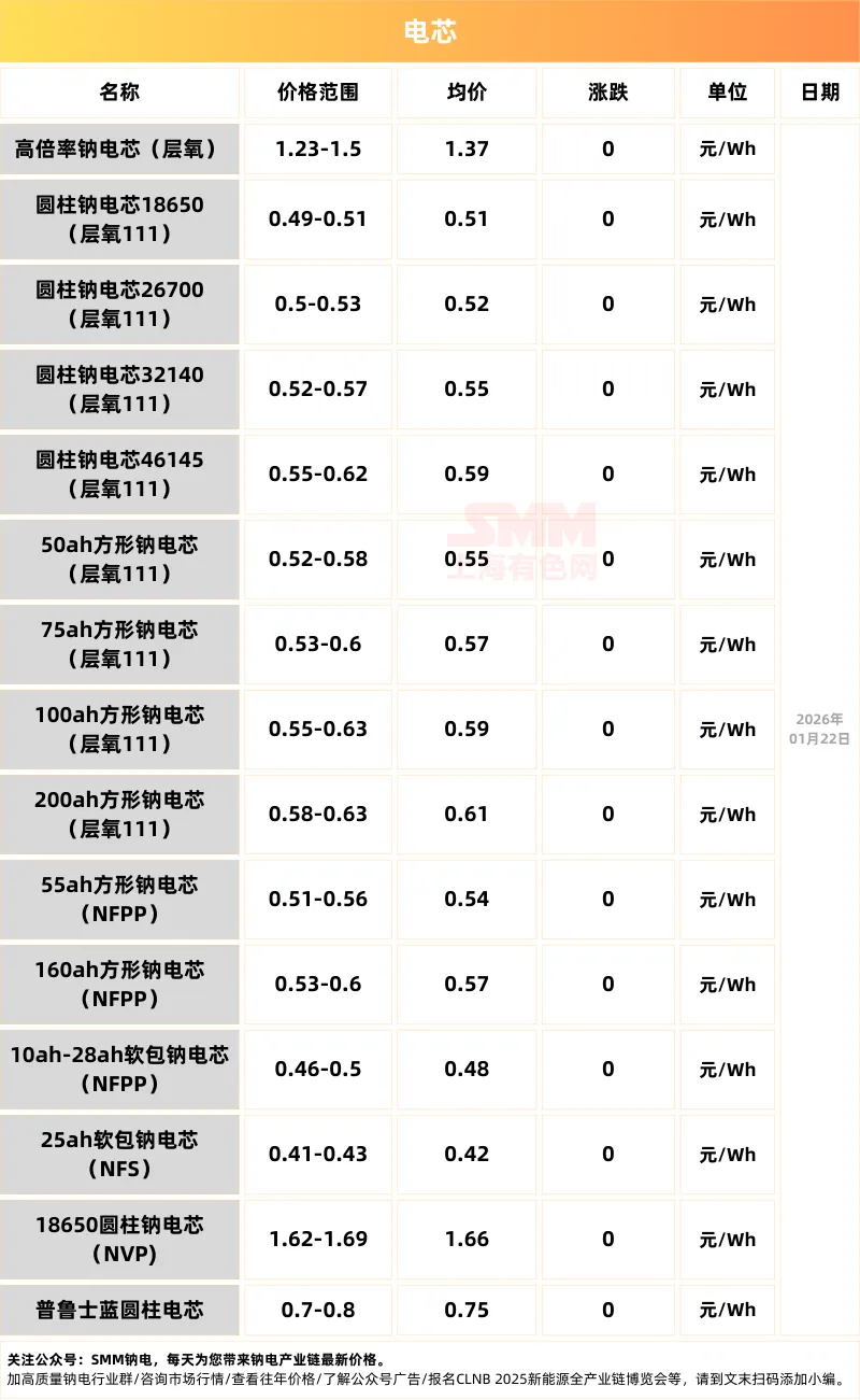 每日获取最新钠化合物、前驱体、正极材料、硬碳、电芯、电解液价格