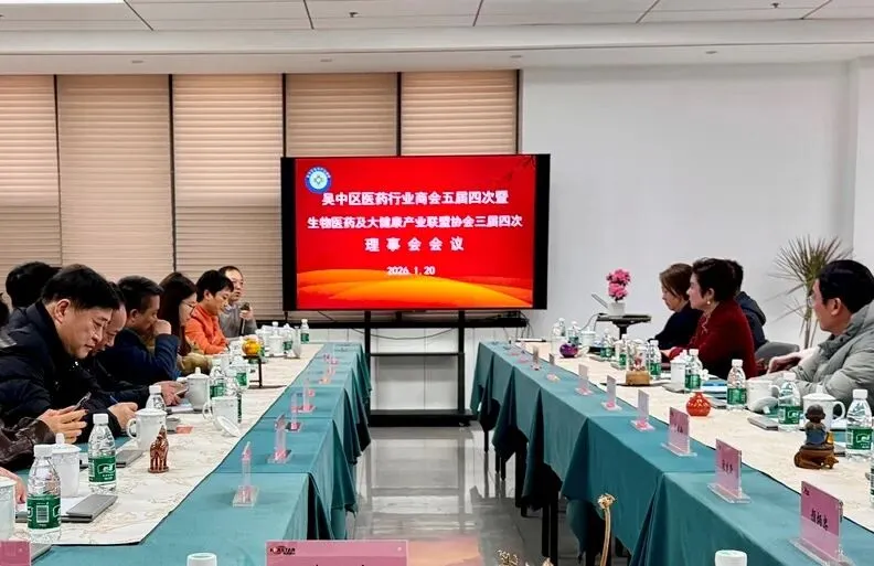 2026年1月20日,吴中区医药行业商会五届四次暨吴中区生物医药及大健康产业联盟协会三届四次理事会会议召开。区工商联领导以及商协会全体理事、监事、秘书处工作人员参加会议。