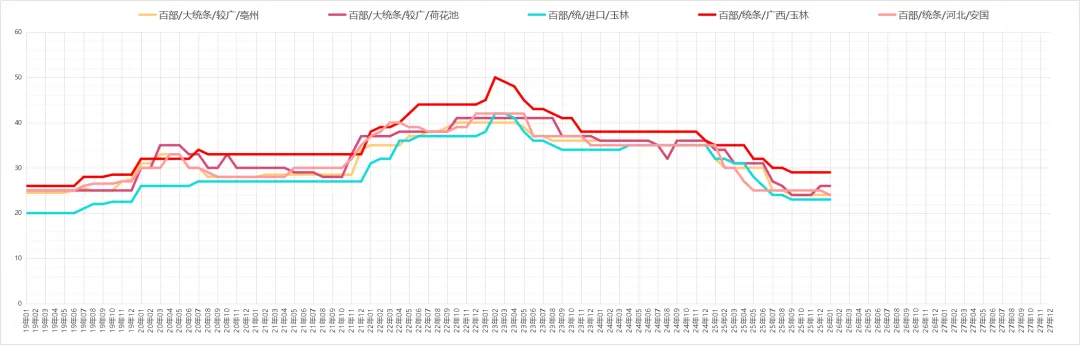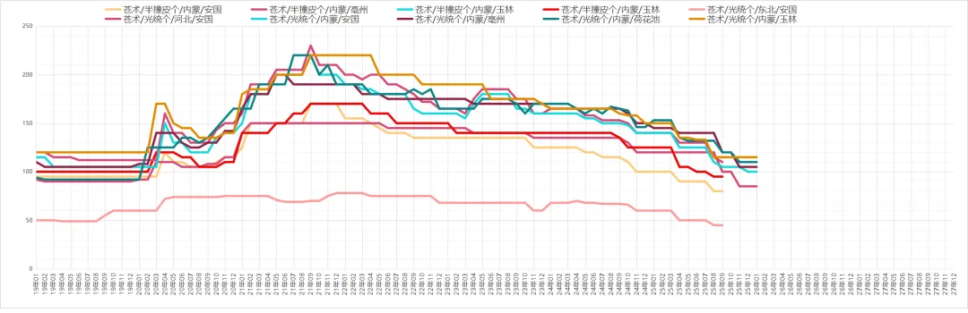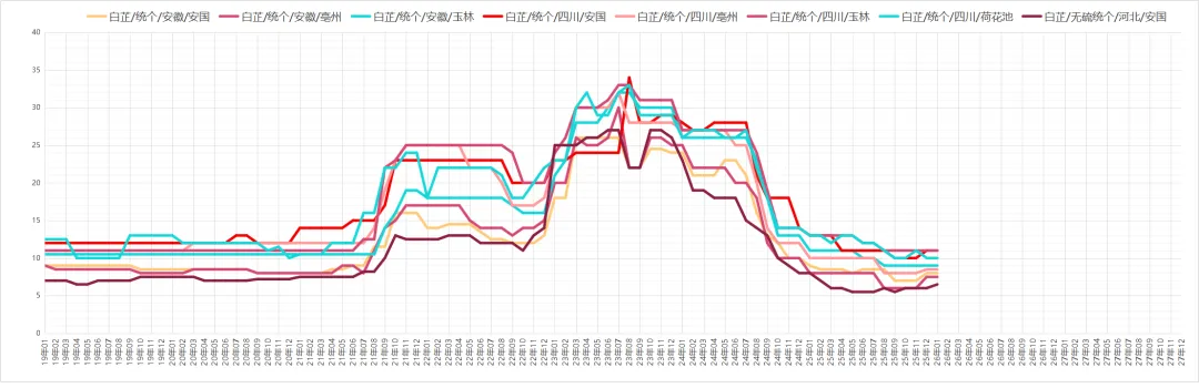 新货干度提升后,商家及厂家采购意愿良好,产地仍有陈货库存,因现价不高,部分持货商出售意愿不强。价格:不包农残个子30元、统片30-40元;包农残统货40-50元、统片50元,过3号筛片约60元。
