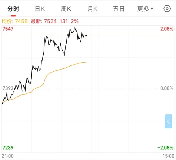 期货主力合约早盘猛拉,最高7525元/吨,这一价格较2025年10月创下的6437元/吨低点已反弹超过17%!
