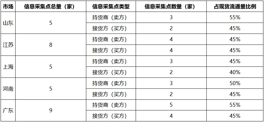 附表:主流市场信息采集点代表性说明