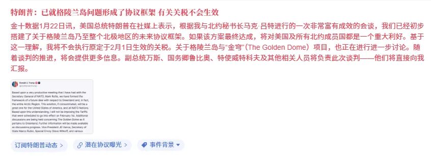 大家好,我是指尖,黄金再次过山车来回,昨天亚盘持续上涨100多美金,欧盘高位震荡来回,美盘由于小特言论引发黄金暴跌100多美金,完全回到了亚盘的起涨点,又是一次TACO交易的把戏。昨晚小特突然宣布,将不对反对其获取格陵兰的欧洲国家加征关税,理由是已就该问题达成“未来协议的框架”。这一表态令市场为之一振。但协议具体内容模糊不清,丹麦同日再次排除割让格陵兰的可能性。周末才对欧洲国家制裁关税贸易计划,昨日晚间突然再次反口,这跟去年4月份的TACO交易非常相似。得益于美股上涨的理由。昨天我们的文章跟视频就有跟大家提及到该事件的发酵情况,特别是注意欧美国家的关税贸易争夺,一旦避险消息消除,黄金将迎来重大调整,结果晚间的已经实现了这一回调整状态。今天还会不会继续调整呢?我们重点看这几个关键节点。今晚所需要关注的经济数据比较多,所以届时可能波动也是比较大,近期的行情都是亚盘的波动比较大,然后欧盘非常小,美盘是凌乱的行情波幅。如果今天再次无脑的收回昨天的跌幅,那么昨天被洗盘出来的人就非常痛苦。今天上方关注的压力位有4840美元以及4888美元高点。下方支撑位关注4755美元昨晚回调最低点。现在最重要的还是耐心跟恒心,切勿追涨杀跌操作,虽然大方向还是继续看涨不变,但是短线却有些难以把控。日内关注4840-4755区域范围,突破哪一边则顺势跟进。长线的朋友仍然做时间的朋友就行。免责条款:市场有风险,投资需谨慎。本文内容不构成个人投资建议,也未考虑到不同读者的个人财务状况和投资诉求,仅记录作者个人观点及看法,据此投资,责任自负。