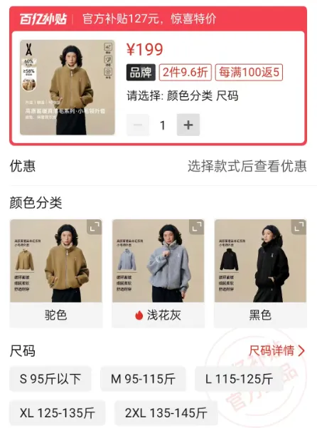 价格是199.9元(浅花灰)。