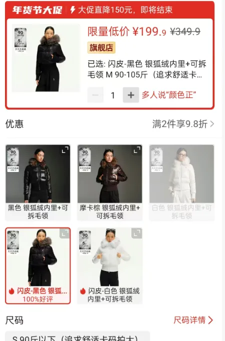 价格是199.9元(闪皮黑色/银狐绒内里)。