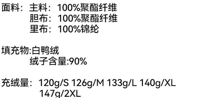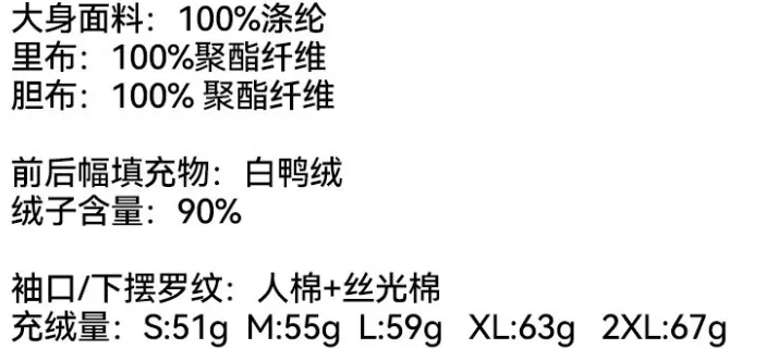 是个拼接款的,前后填充是鸭绒,袖子不是鸭绒。
