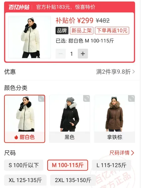 价格是299元(甜白色)。