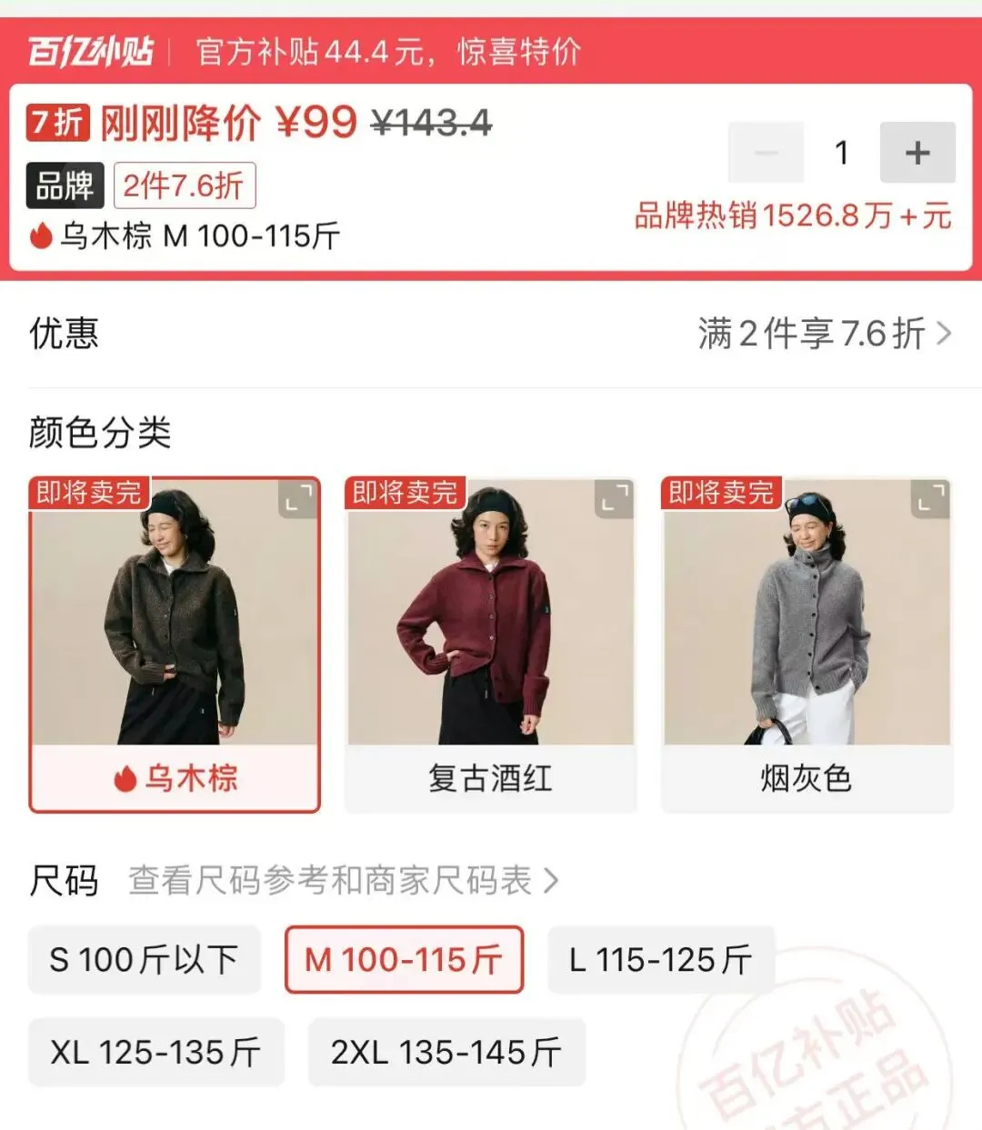 价格是99元(咖啡棕)。