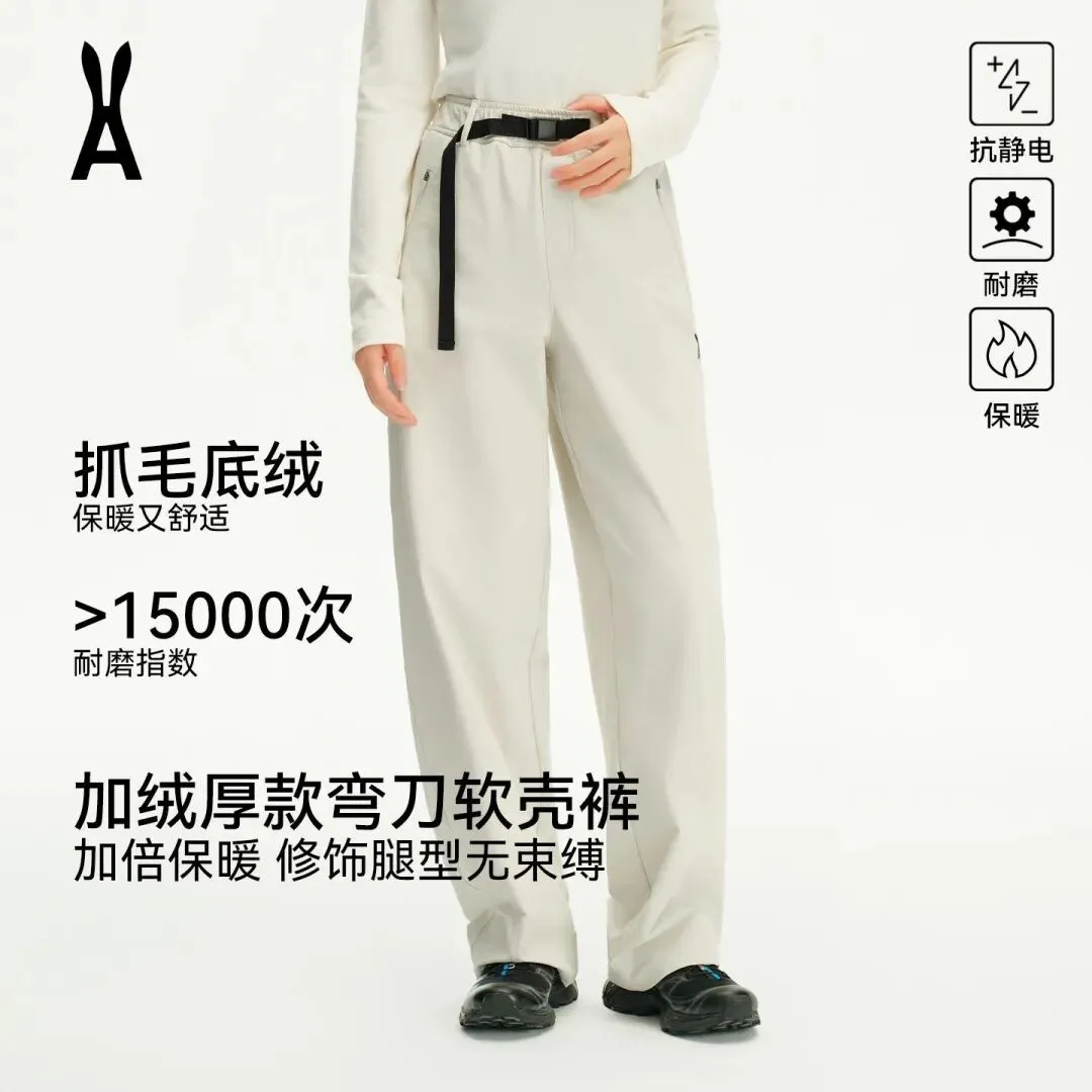 就是软壳版的冲锋裤,但设计的不土,是宽松直筒款的,还有个腰带。