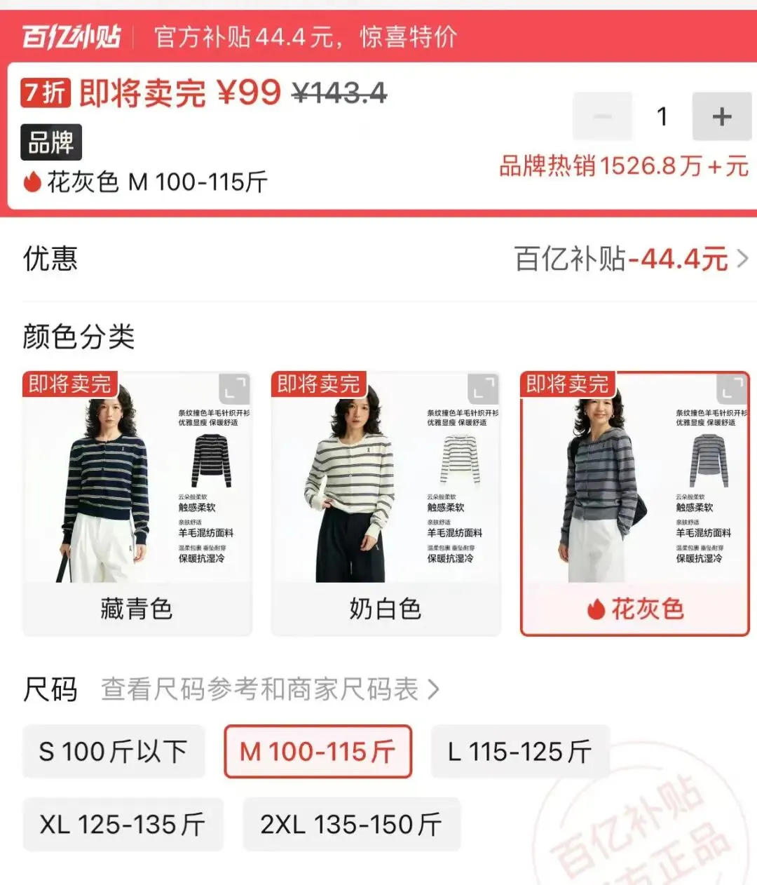 价格是99元(花灰色)。