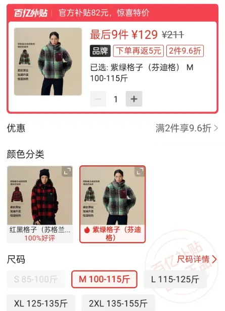 价格是129元(紫绿格子/芬迪格)。
