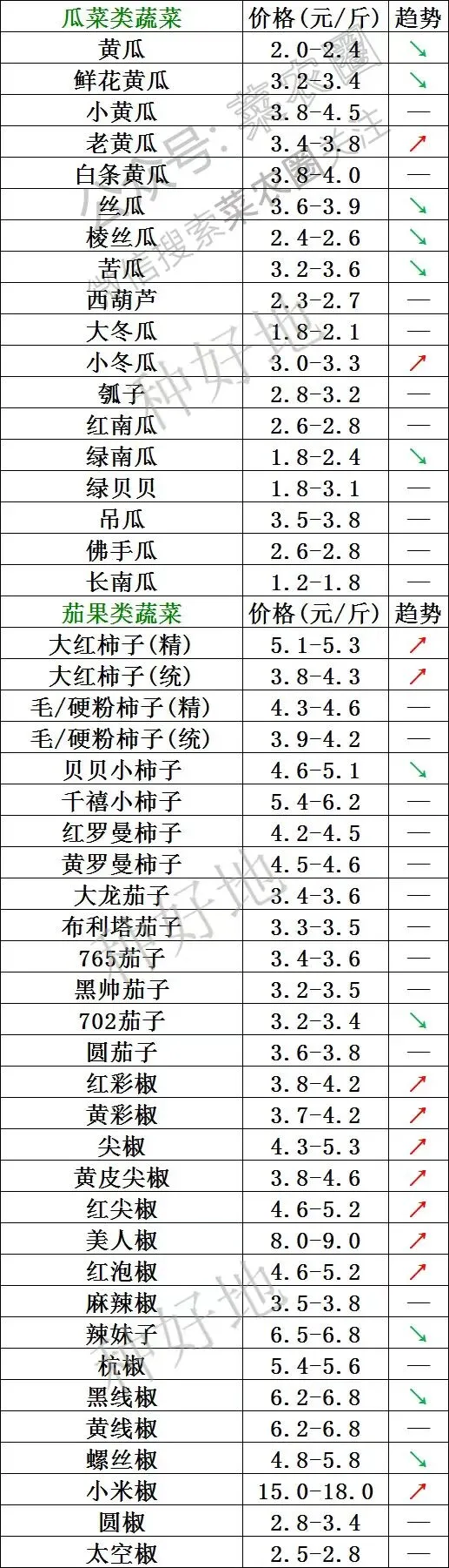 2026年1月22日寿光本地菜价走势,呈现有涨有跌的态势,其中茄果类蔬菜价格以上涨为主,而部分瓜菜类价格有所下跌。