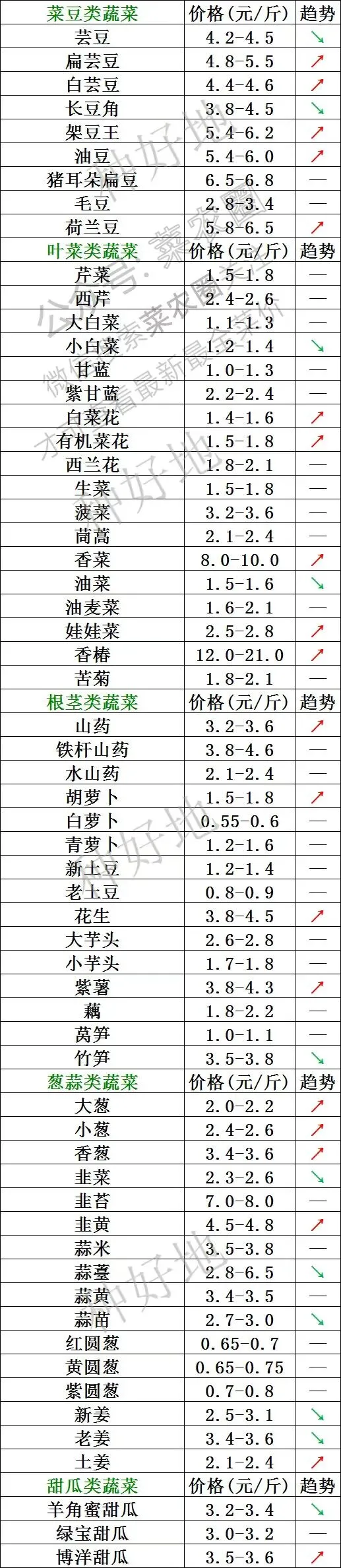 多数叶菜类(如香菜、菠菜、甘蓝)、根茎类(如胡萝卜、山药)以及圆椒、西葫芦等品种价格与昨日持平,未出现波动。