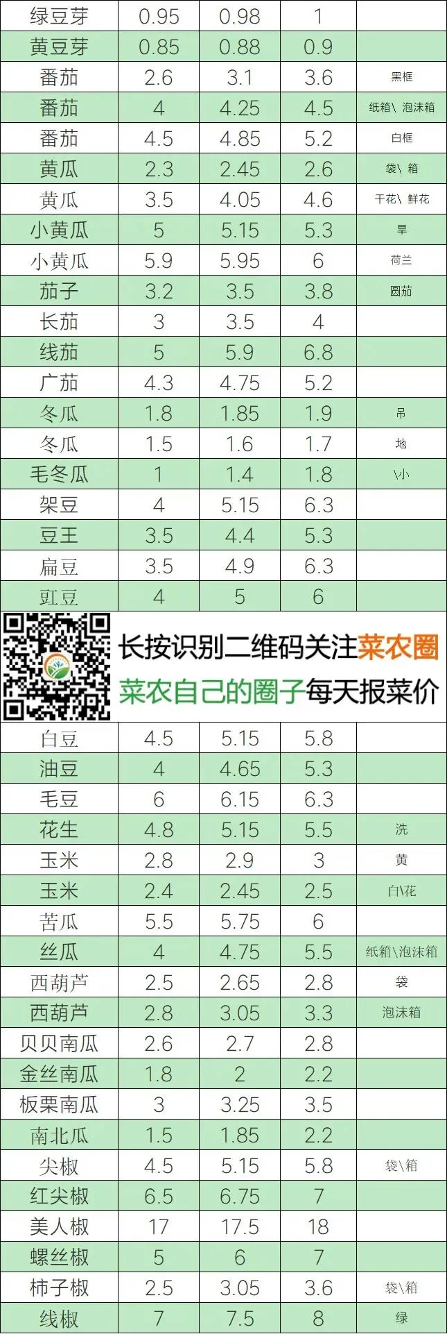 | 绿菜花 | 1.9 | 2.05 | 2.2 | |