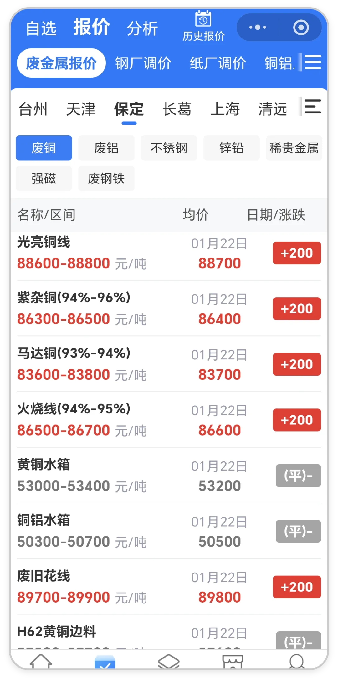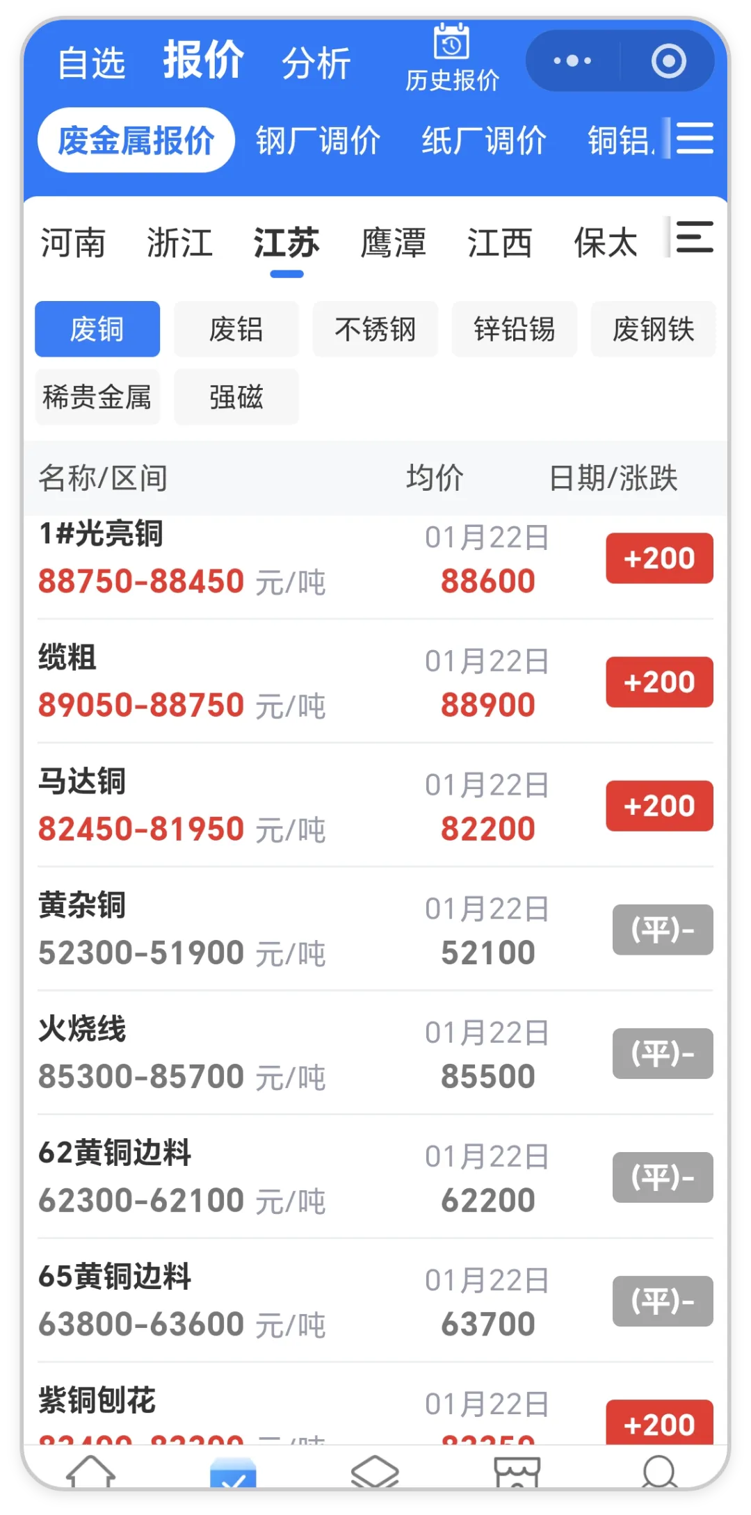 废铜价表现平稳!全国废铜最新价格行情(1月22日)